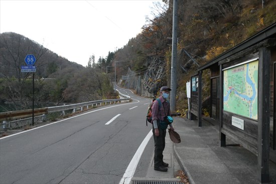 県道55号を550mの車道歩きで駐車場へ | ||||