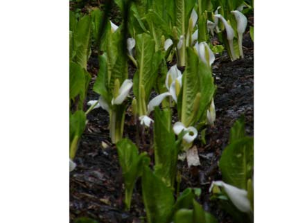 水場を過ぎてブナタテ尾根に取り付くとブナ林で保水力が良い為か、いたるところで水芭蕉の植生地帯を