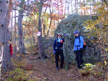 姥と孫が石になったといわれる伝説の姥石を右に巻いてひと登りで岩ゴロの小ピークだ。