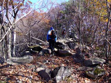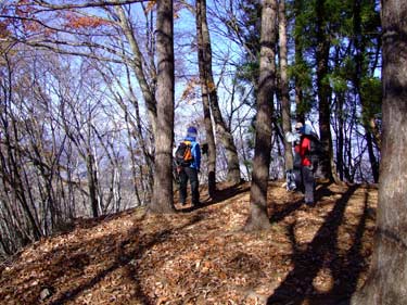このルートはコナラの樹林帯歩きで展望は無いが、緩い上りで「二の岩」「休憩ベンチ」など通過し汗をかく間