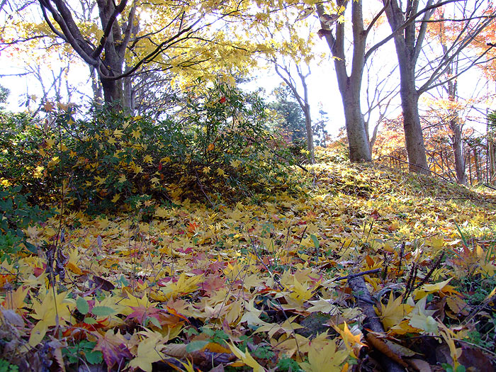 三等三角点が置かれており、雁田山より27.3m高いがナラやカラ松に囲まれており展望は無い。