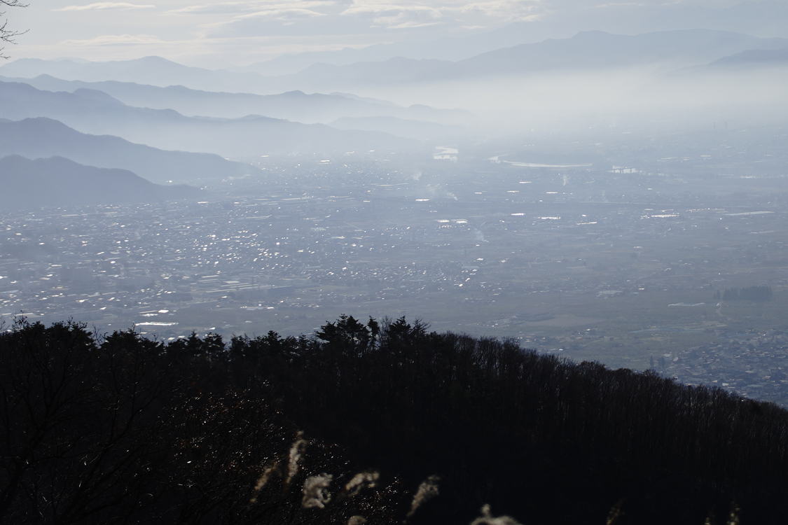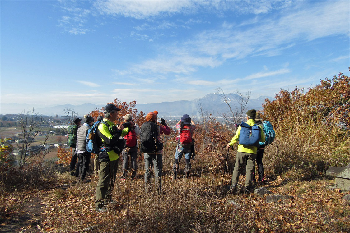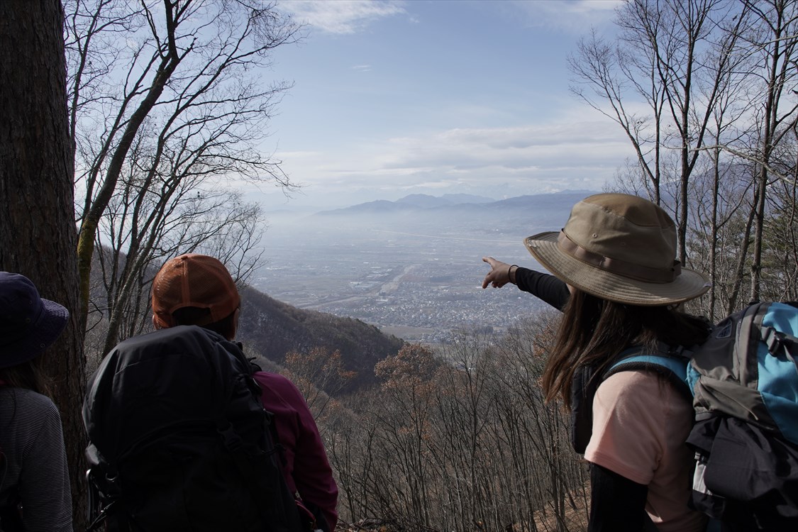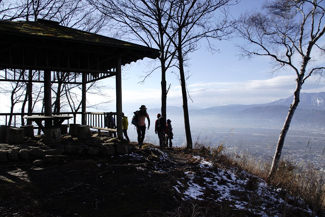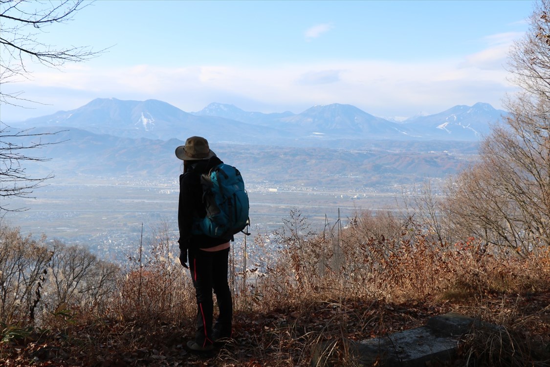 北信五岳のうち四岳展望 (左から飯縄山・戸隠連峰の高妻山・黒姫山・妙高山) 雁田山・展望台からのパノラマ図解あり |