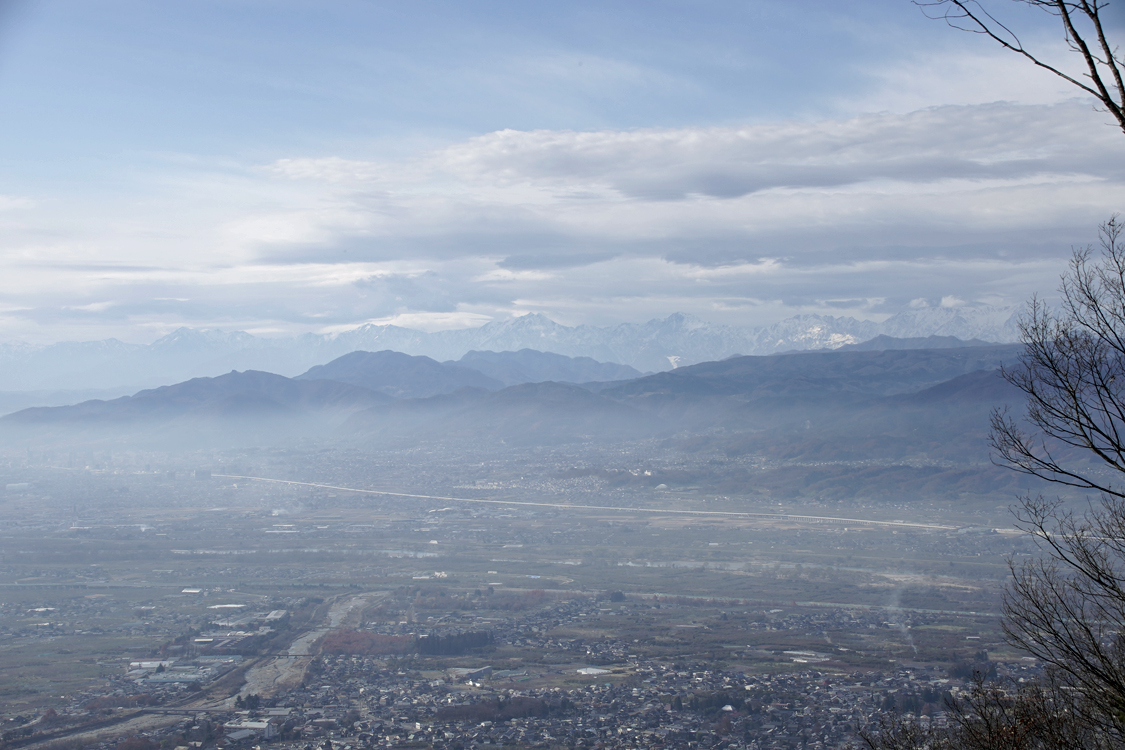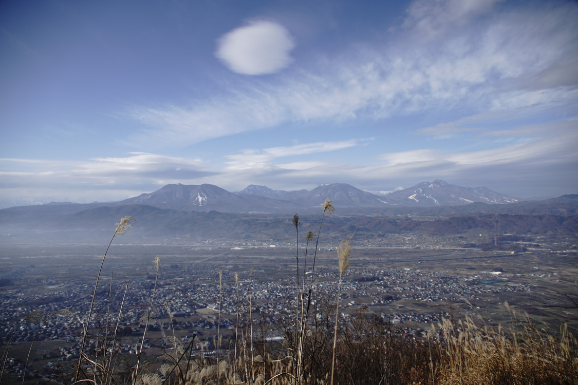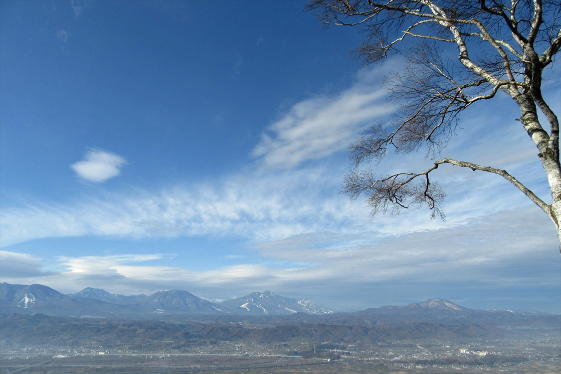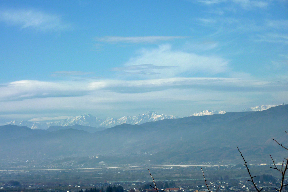 北信五岳 (左から飯縄山・戸隠連峰の高妻山・黒姫山・妙高山・斑尾山) |