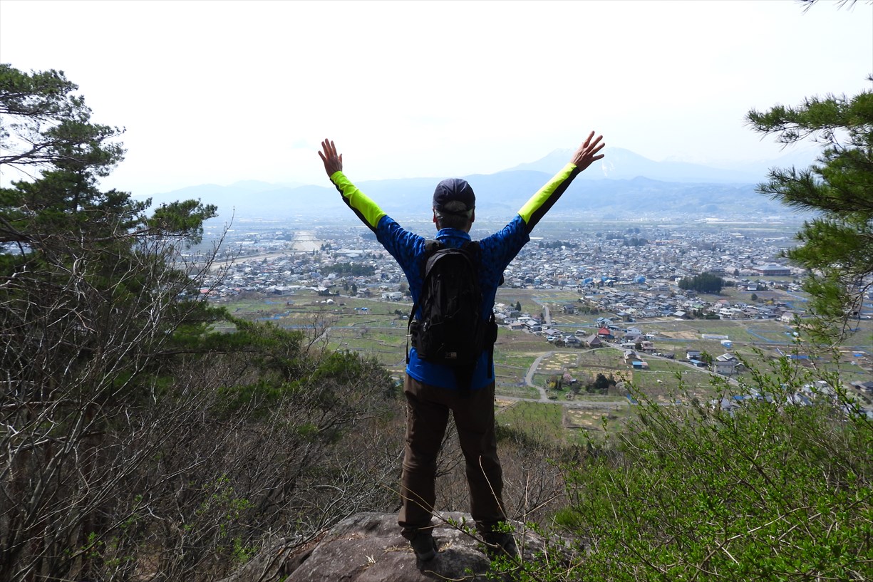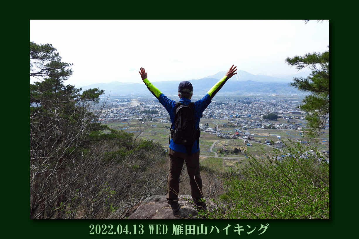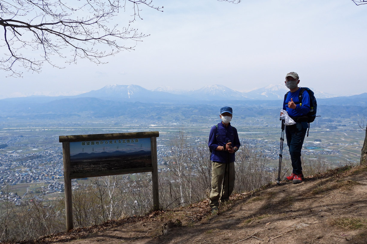 展望園地(東屋あり)で記念撮影 雁田山展望台からのパノラマ図解あり |