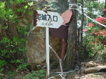 草もない砂礫の尾根道(写真6)をたどると、左手の姫城跡(横吹山)からの尾根が合わさる。