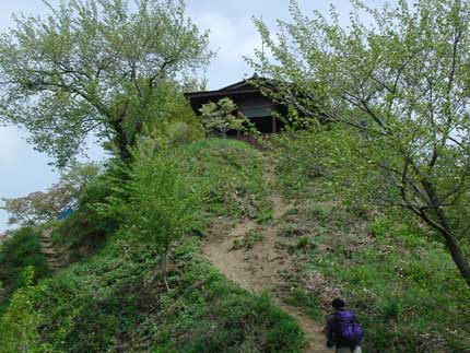 坂城町の展望を梢越しに楽しみながら、上り着いた小さな台地は葛山城の三の郭跡。