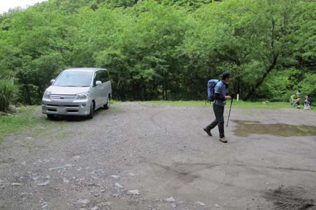 登山口まで車道を歩く |