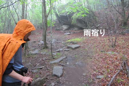 雨が降り出しカッパ着用 |