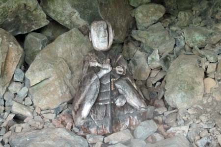 大岩で雨宿り(木彫り仏) |