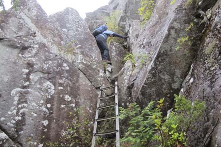 山頂北側のアルミ梯子を降りる |