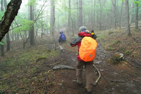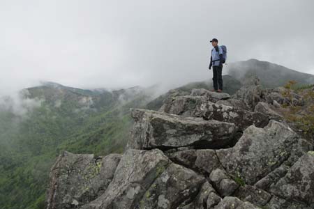 雨乞岩を通過後の岩稜は富士山や甲府方面の展望適地なのだが・・・(残念) |