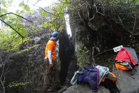 ↑入り口側から撮影 別名:メタボ測定岩 なんちゃってね (*^o^*) ↑崖側から撮影 |