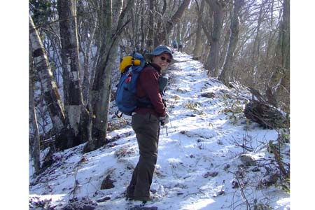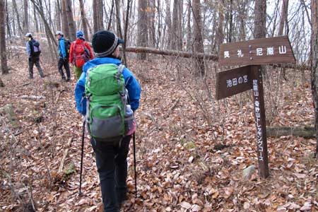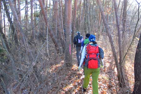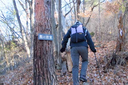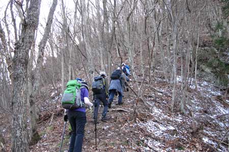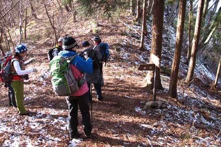 この指導標で尾根筋に取り付く | 尾根上に出るまでは急坂なのでスローペースで | |||
