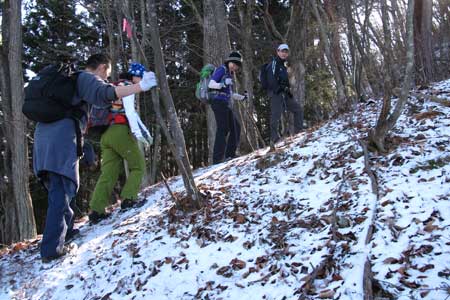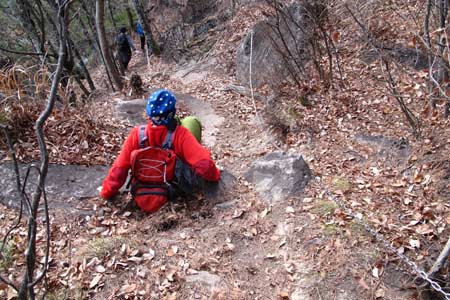 急斜面を枯葉滑りに挑む酒○さん | クサリ場 | |||