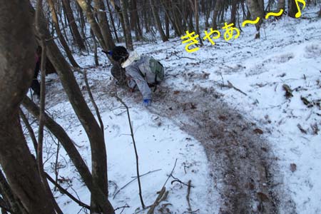 落ち葉の上に積もった雪はグリップが効かない | ファイト!! | |||
