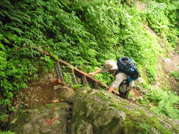蒸し風呂状態の登山道歩きで、お尻からも大量の汗が出てズボンがびしょ濡れ状態を初体験のひらさん |