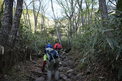 うぐいす茶屋通過後はひたすら笹原道を進む |