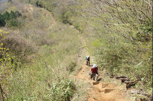 金時山からうぐいす茶屋までの激下りがもったいな〜い! 誰か向こう側までワイヤーを架けてくれないかなぁ〜(笑) |