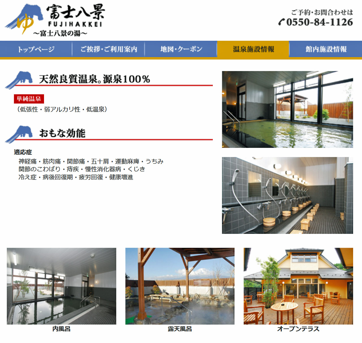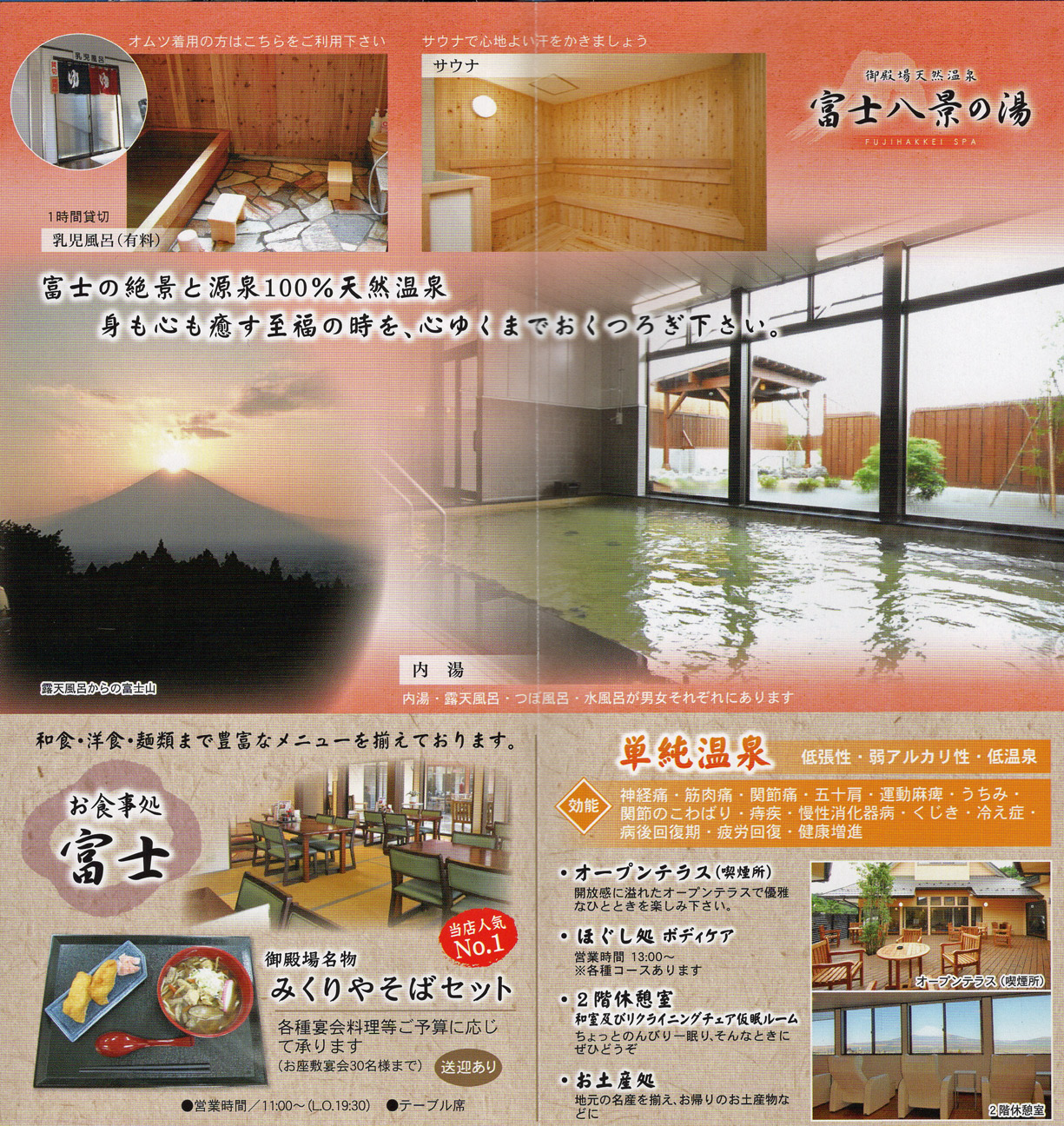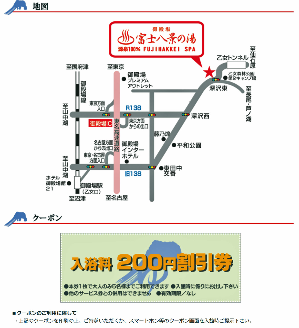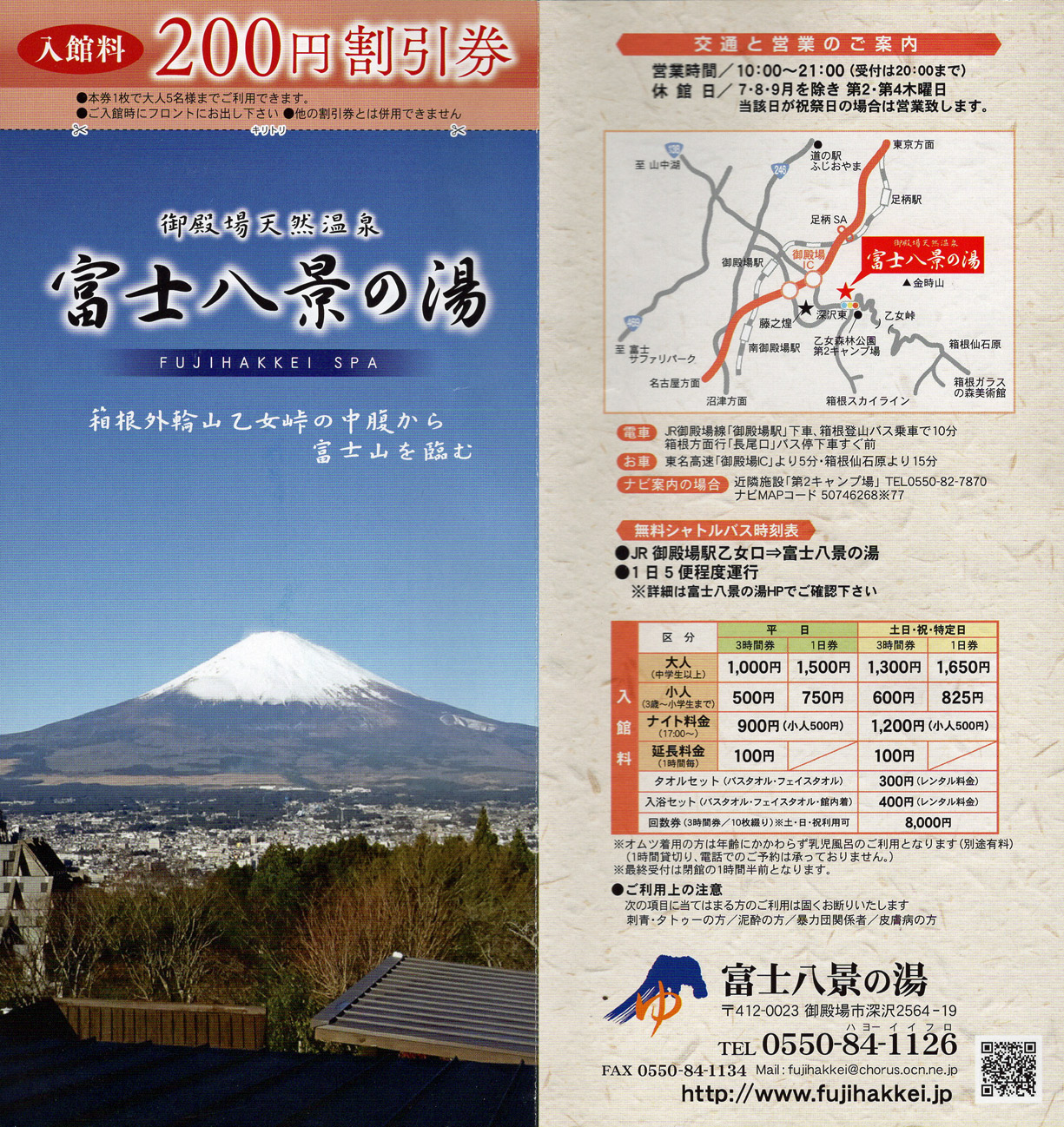 富士八景の湯公式ホームページに割引きクーポン券記載あり | ||||