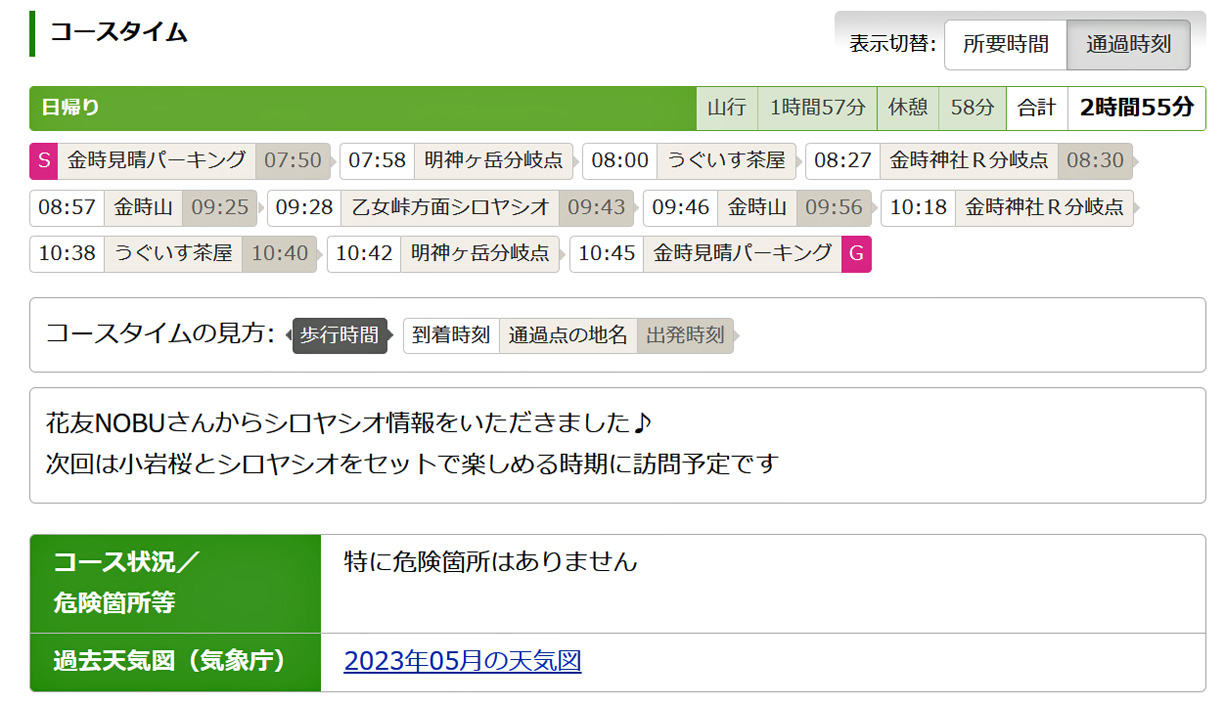 《金時山コースタイム他》 写真撮影時間20分〜100分含む |