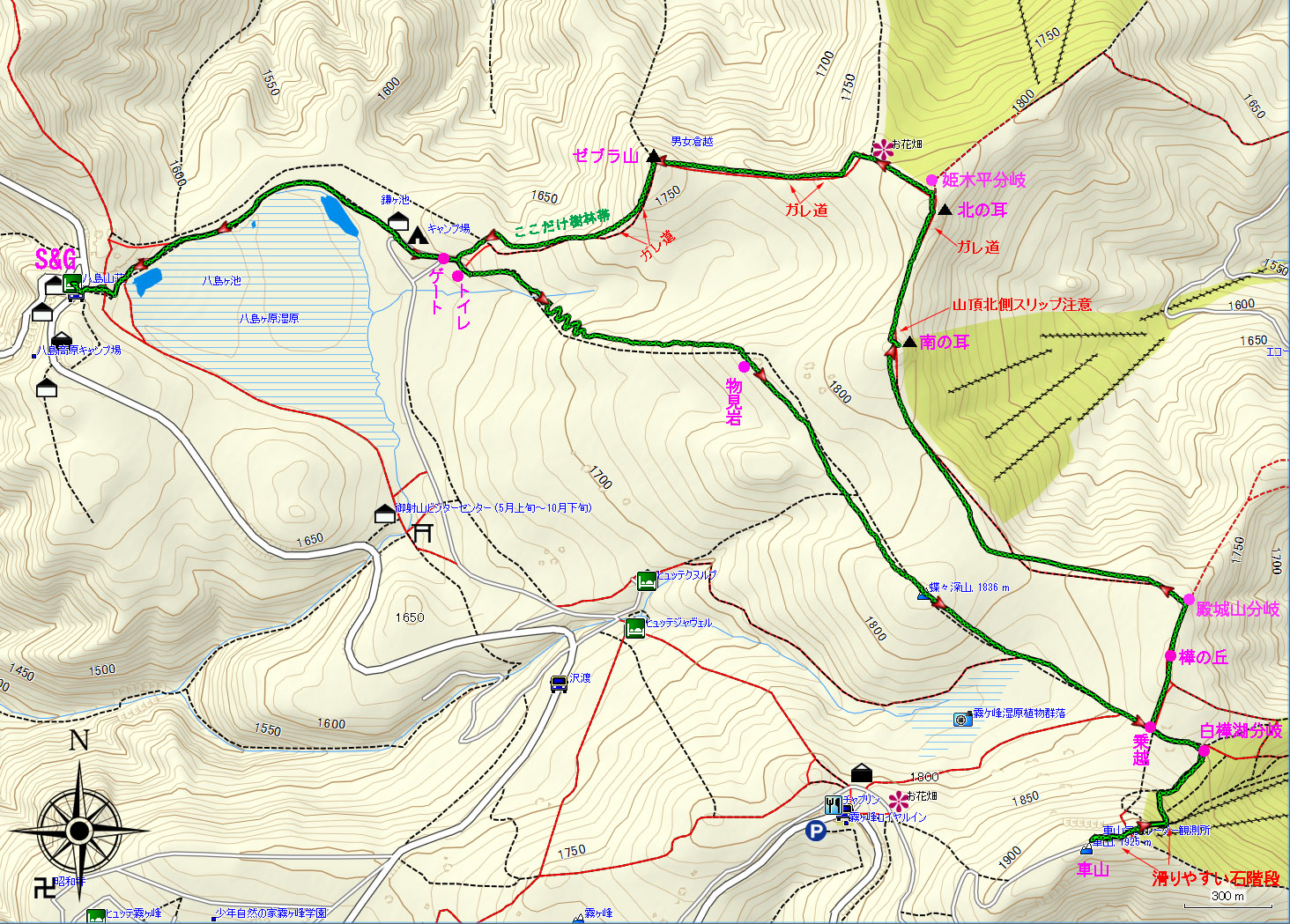 車山乗越まで戻る | 樺の丘 | |||