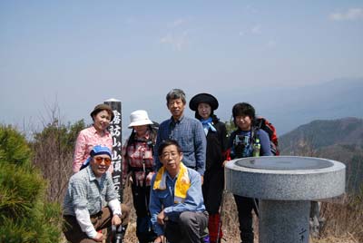 霧訪山山頂 岐阜のネット仲間と合流し記念撮影 |