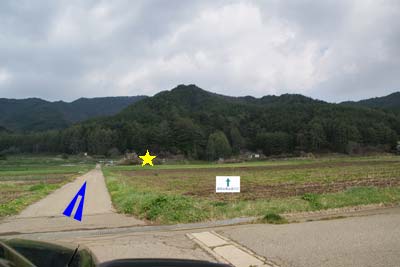 たんぼ道を進む・駐車場(星印) | 7〜9台駐車可・簡易トイレ有 | |||