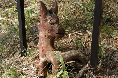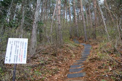 登山口の狛犬? 実は木の根っ子 | 登山口の急坂は滑り止め階段に | |||