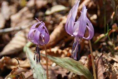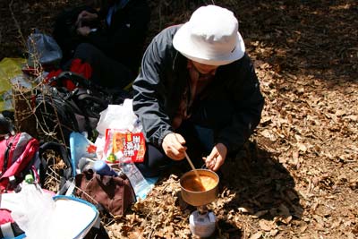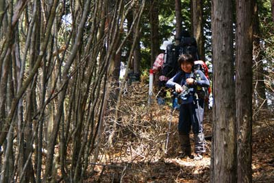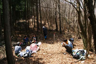 女坂はカタクリの群生地 | 山頂は狭かったのでブナの分かれまで下りてランチタイム | |||