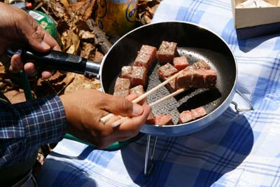 ↑ ↓ 岐阜軍団のランチタイムは超豪華版 ↑ 遠慮知らずのひらさん、持参弁当を食べる前にお腹イッパ〜イ ! ご馳走様でしたm(_ _)m |