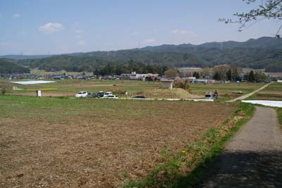 振り返ると 駐車場(手前) 両小野中学校(奥) |