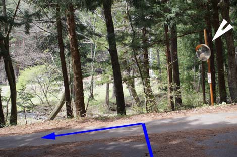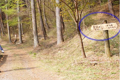 たまらずの池を通過後に左へ(指導標あり) | 自然園ルート霧訪山登山口 | ||||