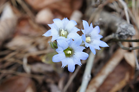 この時期ならではの快適な稜線歩き | フデリンドウ 日当たりの良い場所で咲くのが特徴 |
