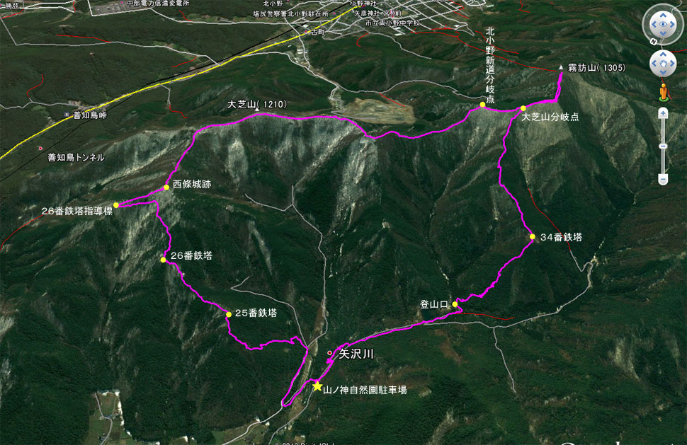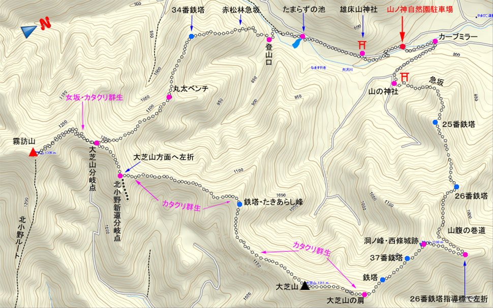 山ノ神自然園〜霧訪山〜大芝山登山地図![]() |