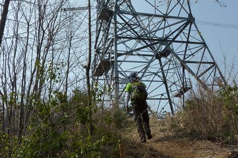 34番鉄塔でひと休み | 34番鉄塔以後は広葉樹林帯の尾根筋歩き | ||||