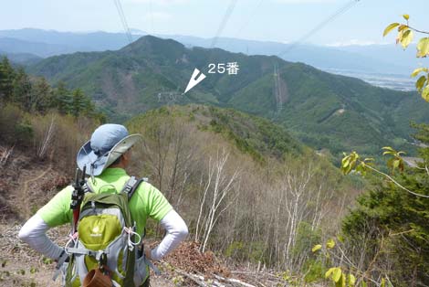 26番鉄塔指導標で左折 | 前方25番鉄塔が最終目標 | ||||
