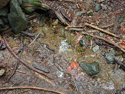 なく、しみ出た水が地面を濡らす程度の場所である。