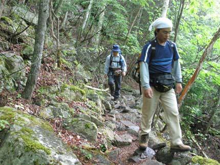 左に折れ最後のガレ場を急登すると甲武信ヶ岳の山頂に着く。 mikio