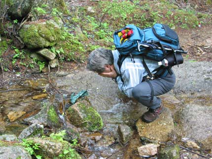 ナメ滝から一時間ほどで「千曲川・信濃川水源地標」の標柱が立つ広場に出る。 源流といっても流れは
