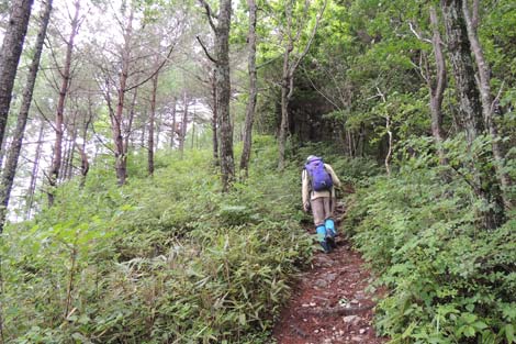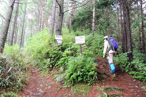 前夜の雨にも関わらず水はけが良く歩きやすい登山道 | 烏帽子岳分岐点・下 |