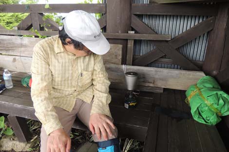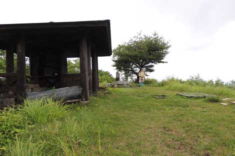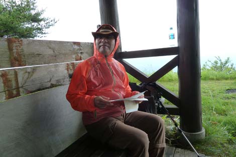 山頂に着くなり大雨と強風の手厚い?洗礼をうけ山頂東屋に待避(約2時間) | ||||||
