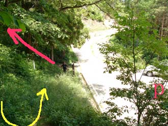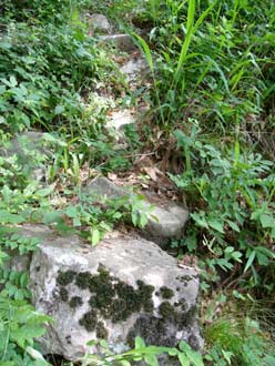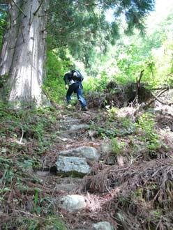 僅かに残る石段 | この急勾配を写真で表せないのが残念 (僅かに残る石段のお陰で直登ができました) |