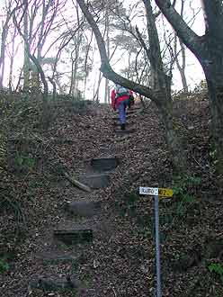 目の前のの階段を上がれば、そこは虚空蔵山西方稜線の鞍部。