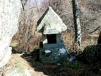 虚空蔵尊を祀った切り妻屋根の石祠(写真・6)は岩陰にある。
