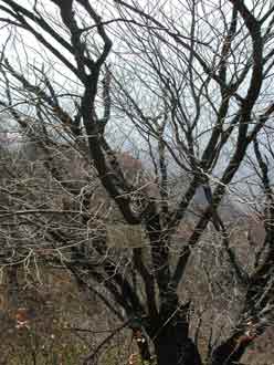 眺めで気分をまぎらわせながら、急登しばしで石祠と「ナンジャモンジャ」の木がある