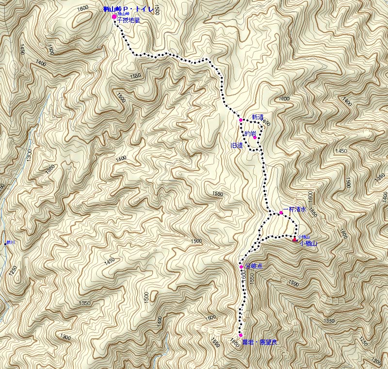焼山峠駐車場標高/1530M 標高差/183M 総歩行距離/7624M |