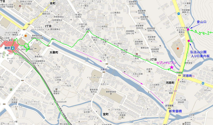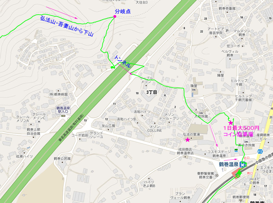 坪ノ内バス停分岐点〜鶴巻温泉駅MAP |