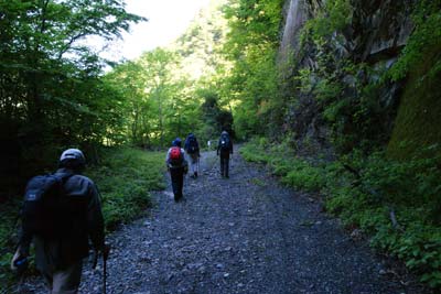 車両通行止めの林道を約1時間歩く 自転車持ち込みで林道往復分の時間短縮可能 |