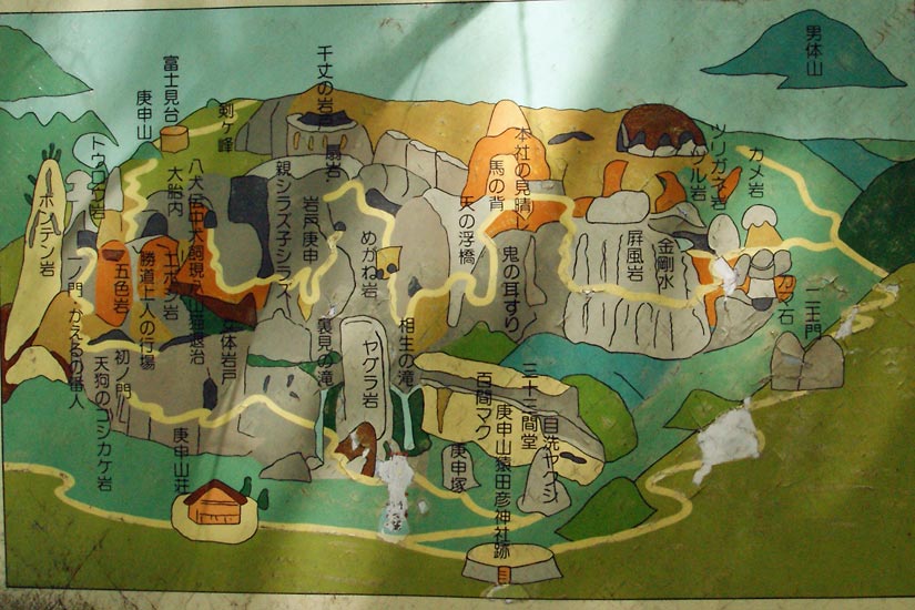 鏡岩・夫婦蛙岩を経て仁王門 | 旧・猿田彦神社跡に到着 | |||