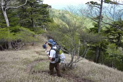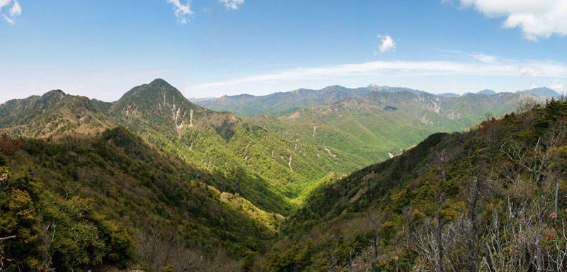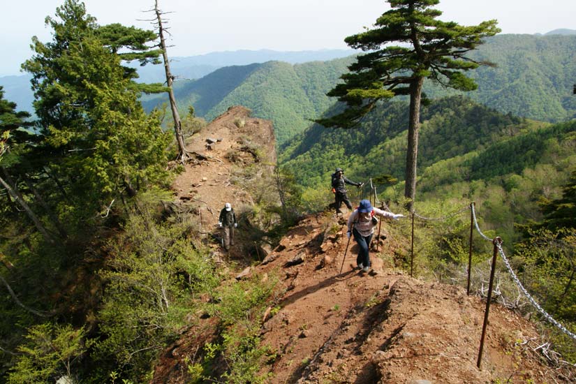 シロヤシオやミツバツツジが咲き乱れる尾根筋を猿田彦神社跡まで一気に下る | ||||